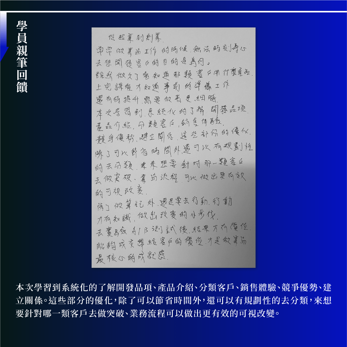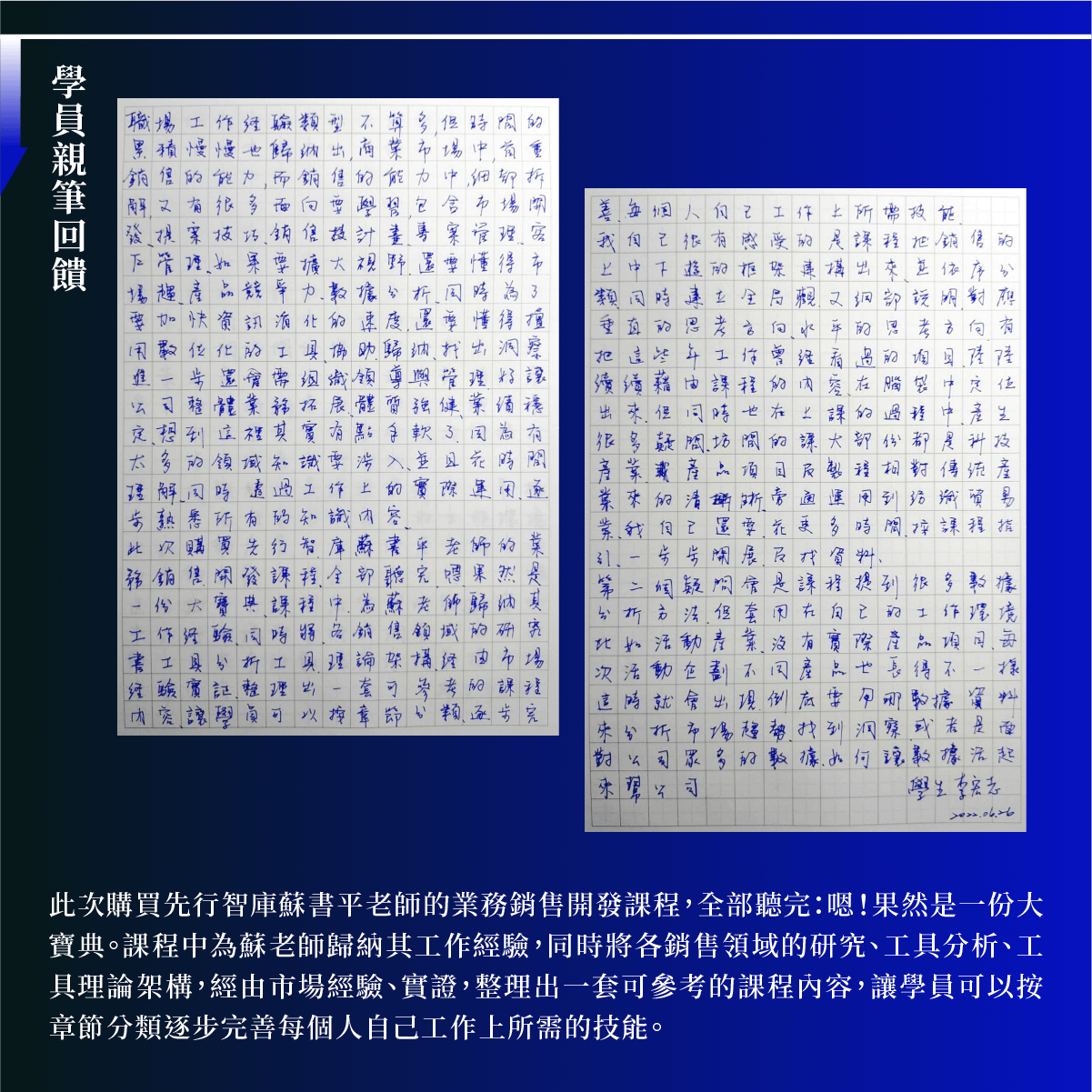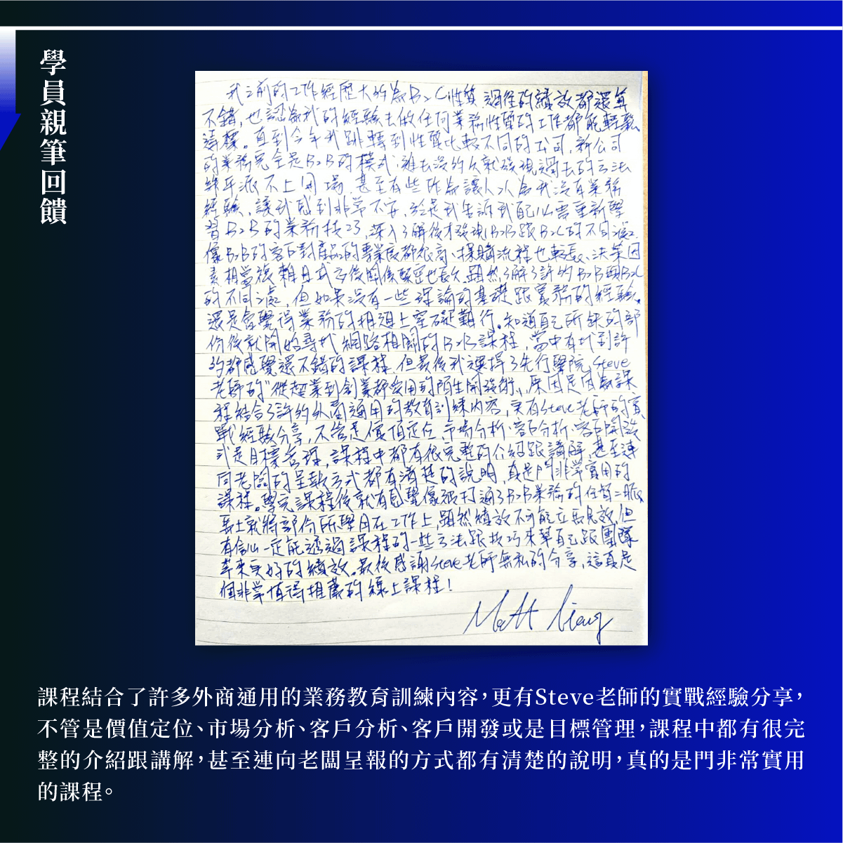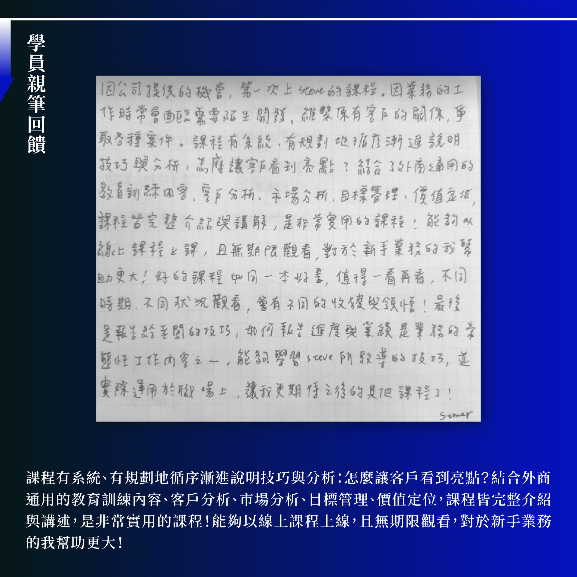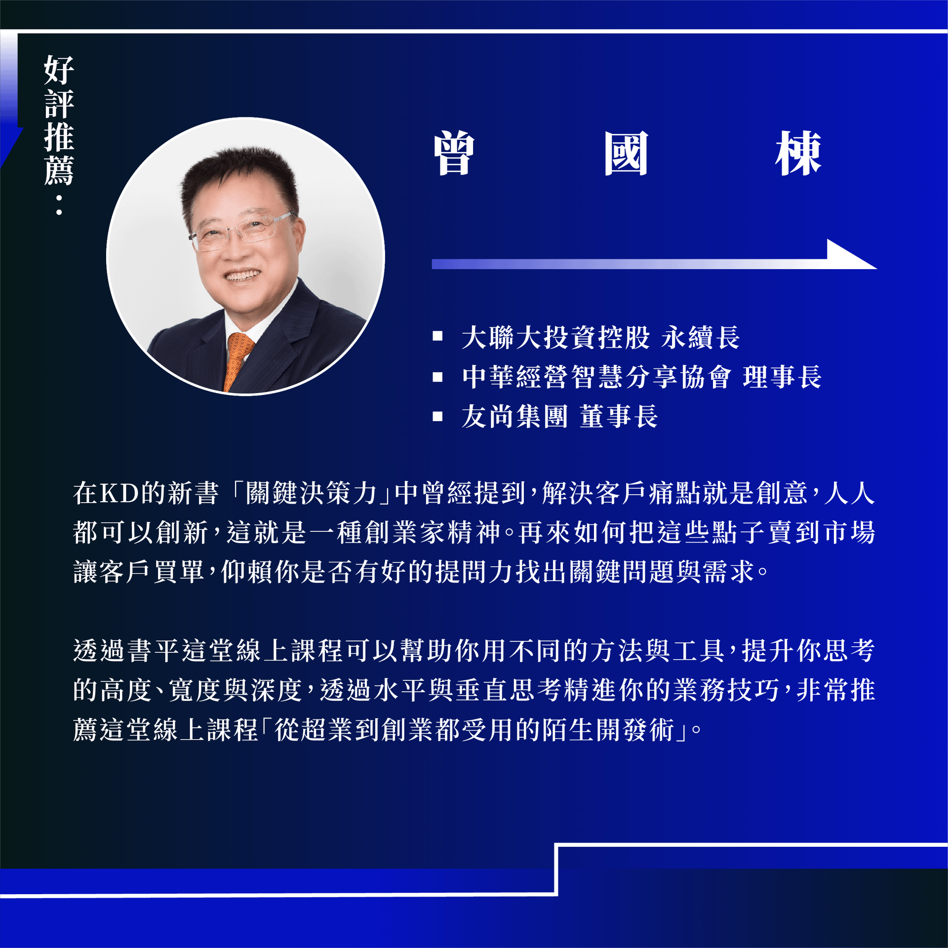 【本課程完整時長約為3hr】再複雜的產品,都能有「步驟」的開發業務!微軟、IBM都在用的3項開發步驟 X 9種業務推進表單 X 1張內部業績報告表,讓你學到世界級的頂尖銷售,是如何成為超級業務的制勝法則!