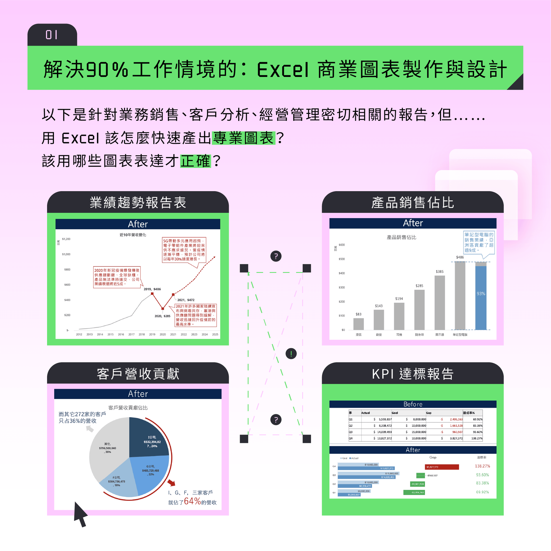 ◎課程名稱:解決90%工作情境的——Excel商業圖表製作與設計