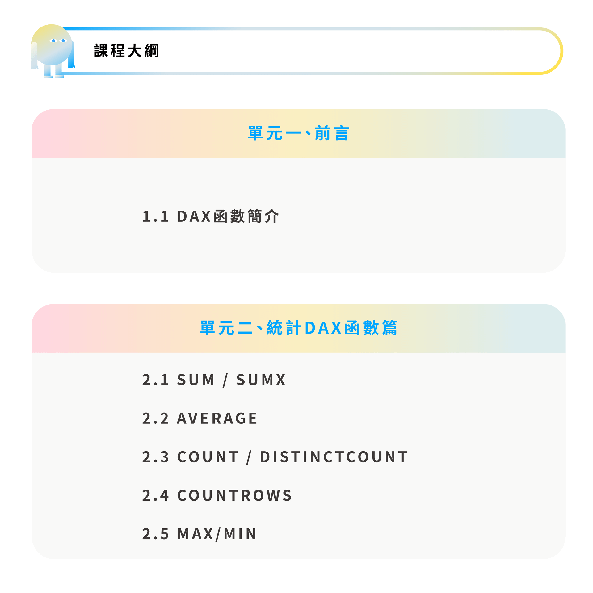 課程內容共 23 個單元•總時數約 2.1 小時