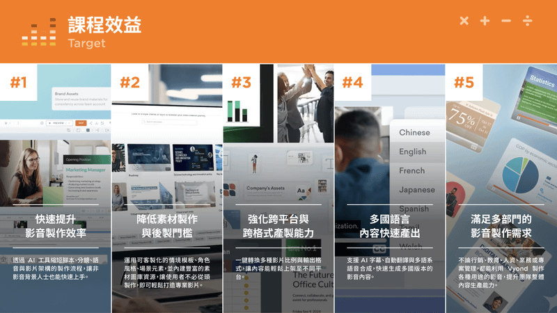 3. 建立符合企業形象的影片:學習運用角色、場景模板與視覺模板,製作風格一致、符合品牌調性的內容。