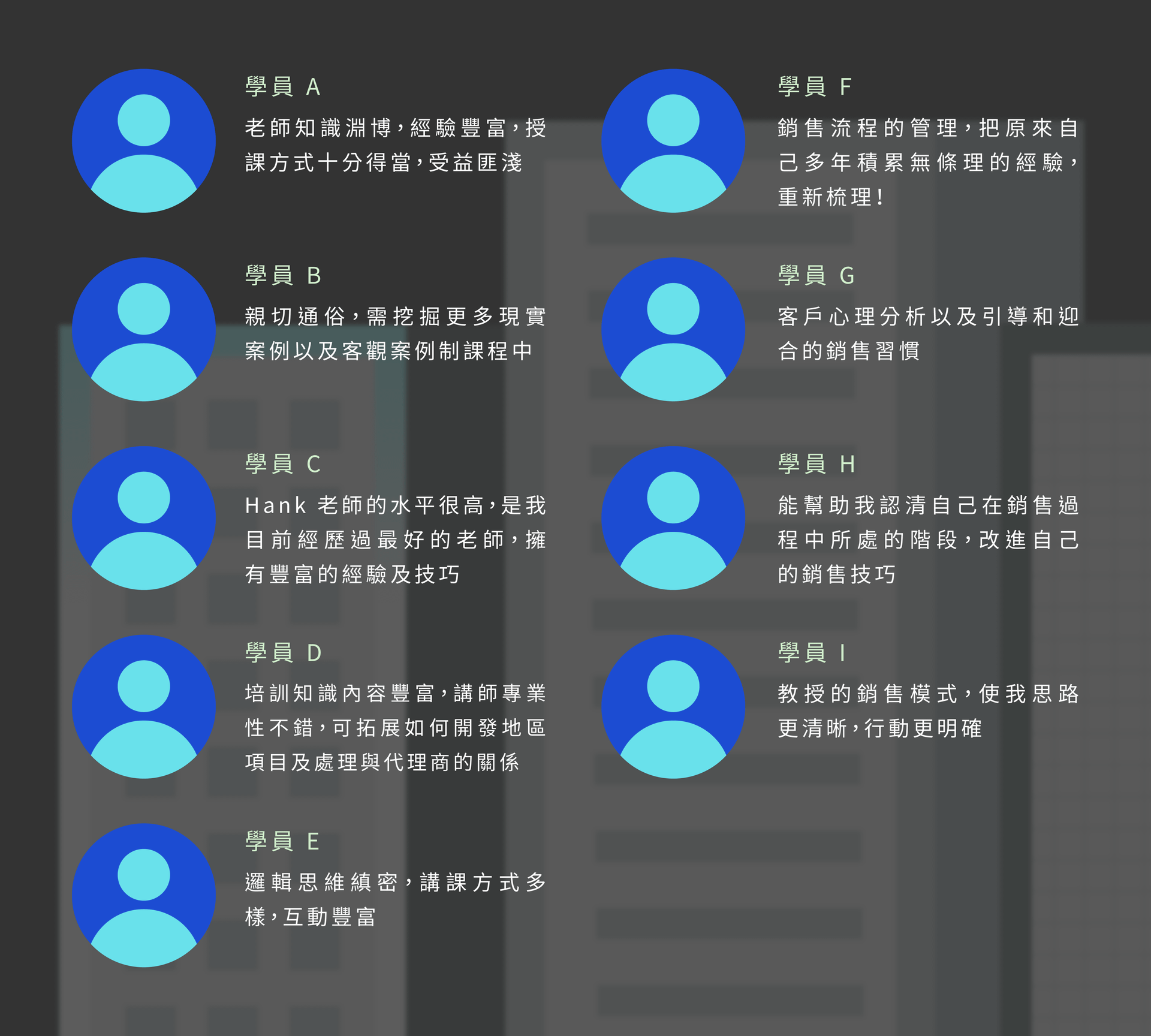 Porter Henry 大中華區首席顧問 Master Trainer三十年以上的銷售以及培訓經驗,曾任3M 公司亞太區銷售能力發展部負責人及 Franklin Covey 科維管理顧問公司中國區首席顧問。